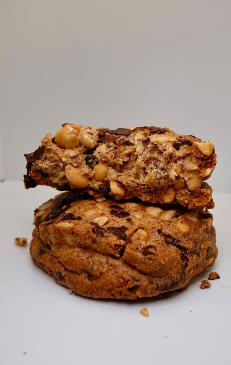 Pâte a cookie nature, pépites de chocolat noir & cacahuètes grillées salées.
